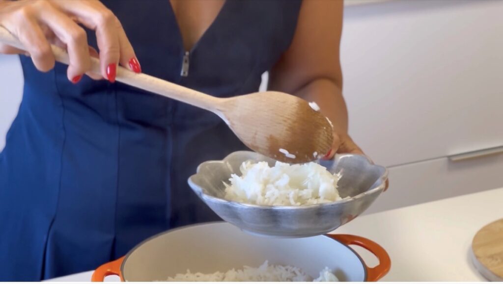 O descanso final é o que transforma um bom arroz cozido numa experiência memorável. Depois de cozer, desligue o lume e deixe o arroz descansar por 5 minutos com a panela tapada. Este tempo de repouso é importante, já que permite que os grãos absorvam o excesso de humidade e a textura se estabilize. Soltar o arroz com um garfo antes de servir completa o processo.