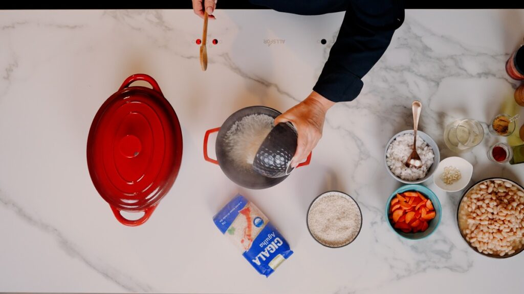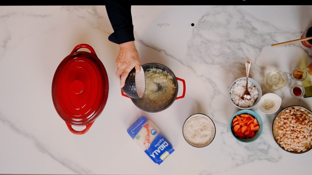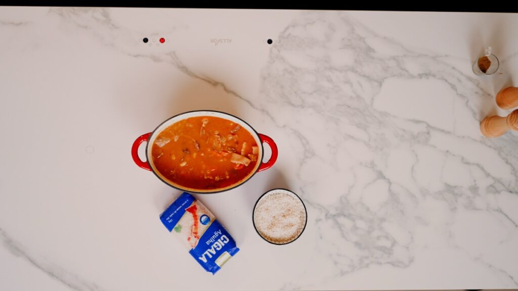 Dica profissional: Para obter um arroz perfeitamente solto, utilize o Arroz Cigala, que mantém os grãos separados mesmo após a cozedura. Para experimentar, adicione uma pitada de açafrão ao arroz para dar cor e um toque de sabor exótico que complementa maravilhosamente a feijoada. Esta técnica de cozedura é semelhante à utilizada no arroz carreteiro, que também valoriza a textura perfeita do arroz.