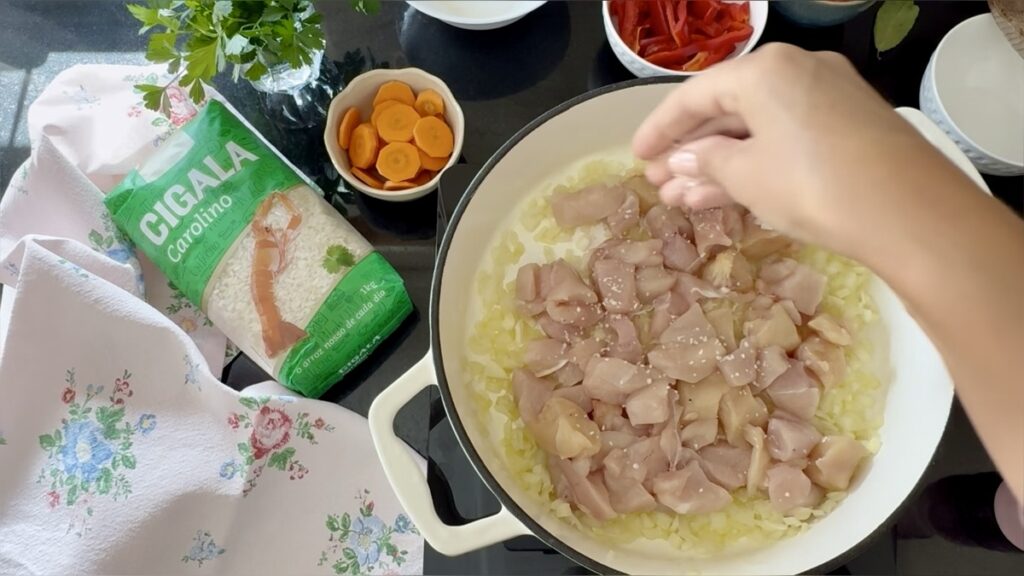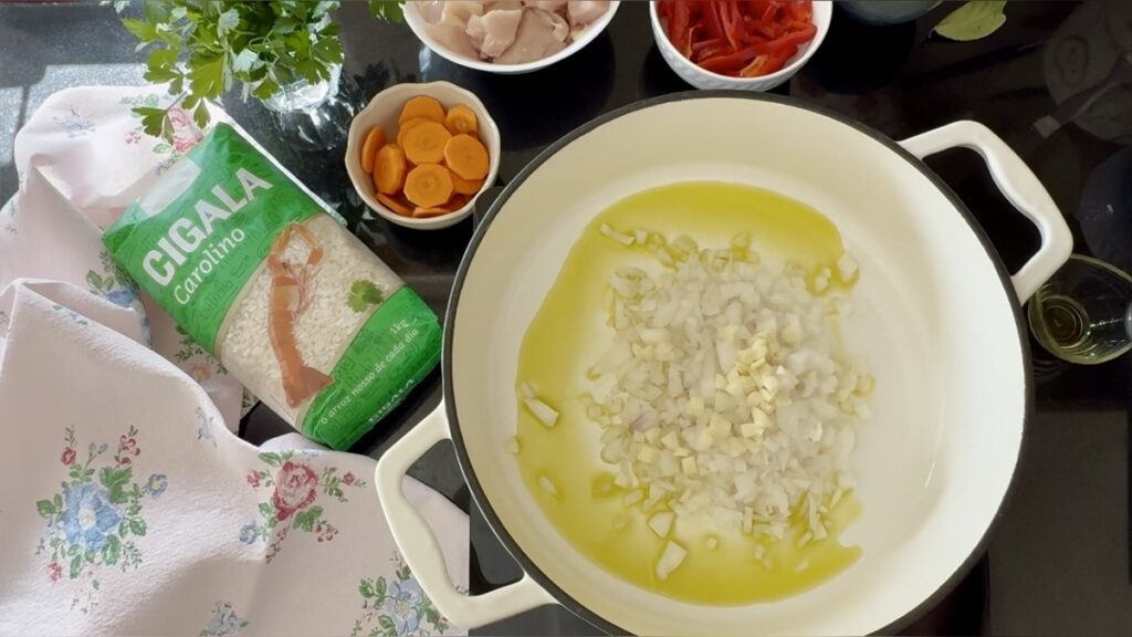 No nosso vídeo, veja como dourar o frango, preparar um refogado de cebola, alho e tomate e como o Arroz Cigala absorve os sabores do molho ao longo da cozedura. Tudo numa só panela, de forma simples e prática.