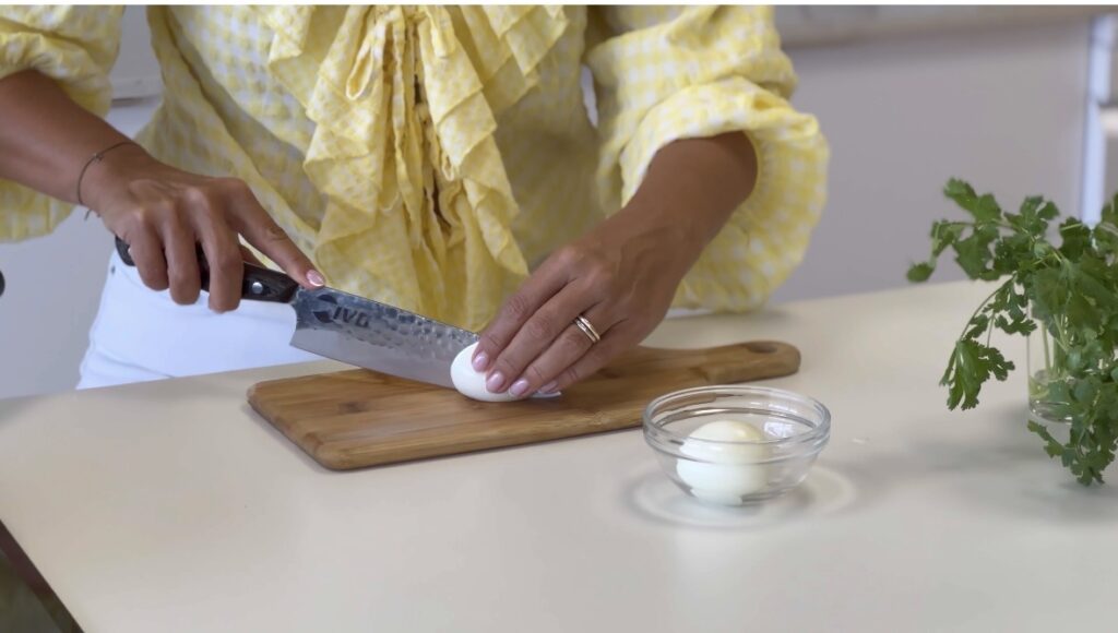 Coloque os ovos em água fria, leve ao lume e, assim que ferver, coza por 9–10 minutos.