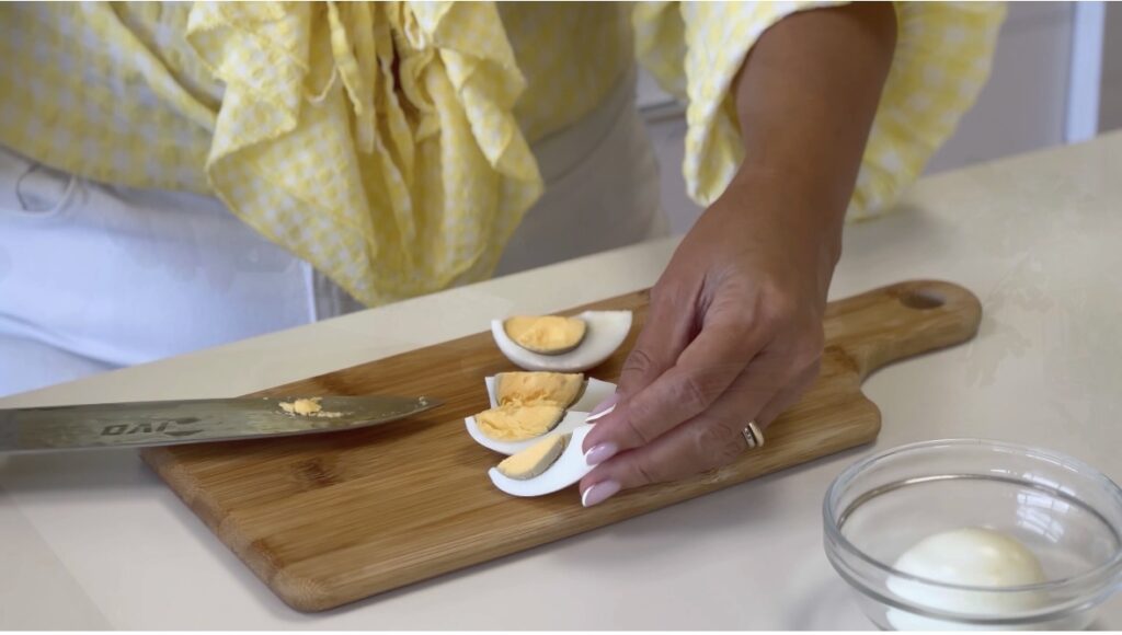 Sirva de imediato, decorado com os ovos em quartos e, se desejar, um fio de sumo de limão para um toque fresco.
