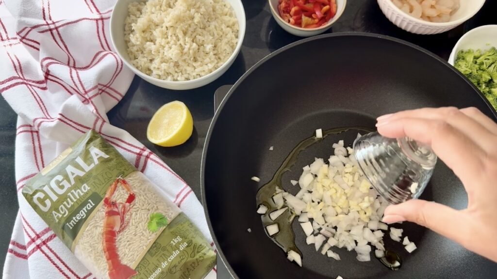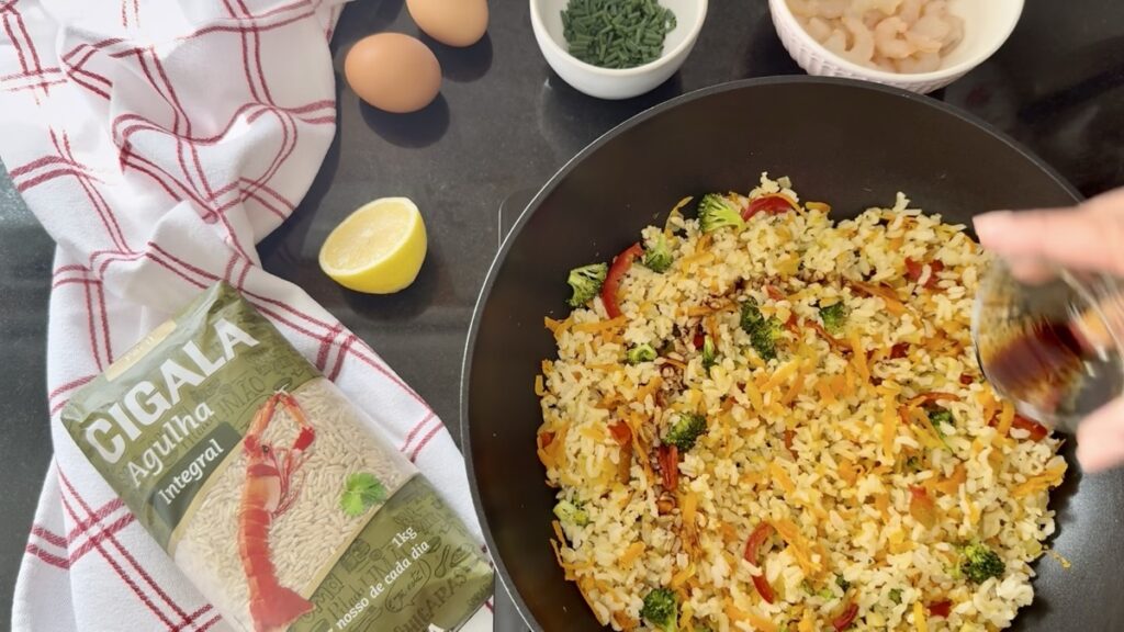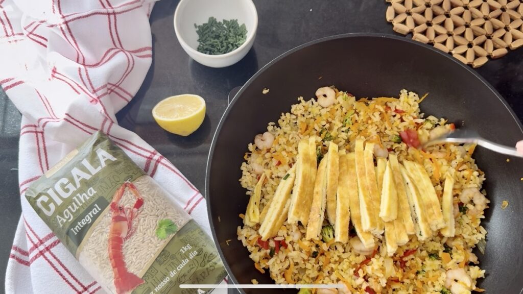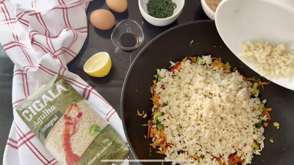 No nosso vídeo, veja como preparar a base com os aromáticos, envolver o Arroz Integral Cigala com o molho de soja e finalizar com o ovo frito por cima. Tudo numa só frigideira, em menos de 30 minutos.
