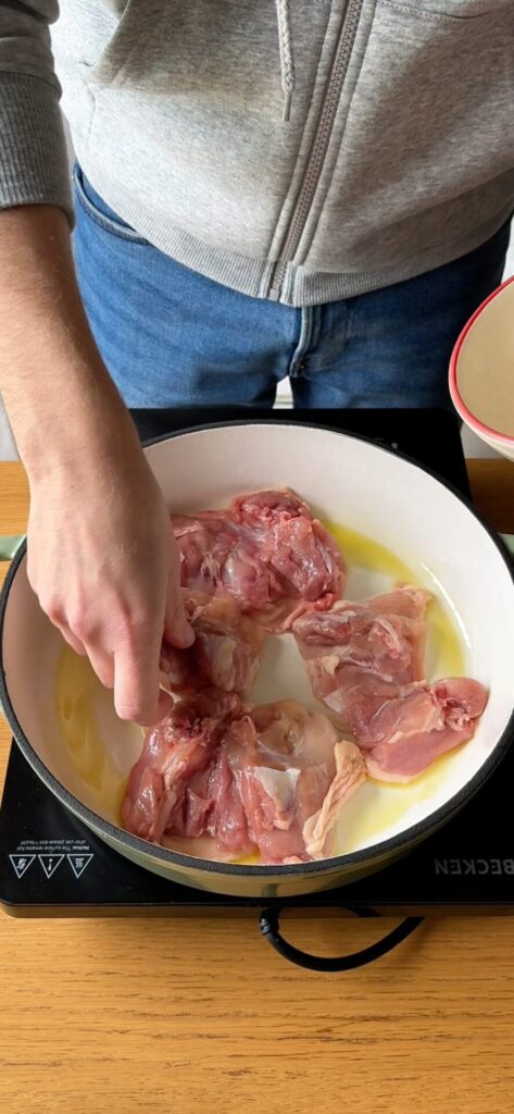 Por fim, devolva as coxas ao tacho, com a pele virada para cima.