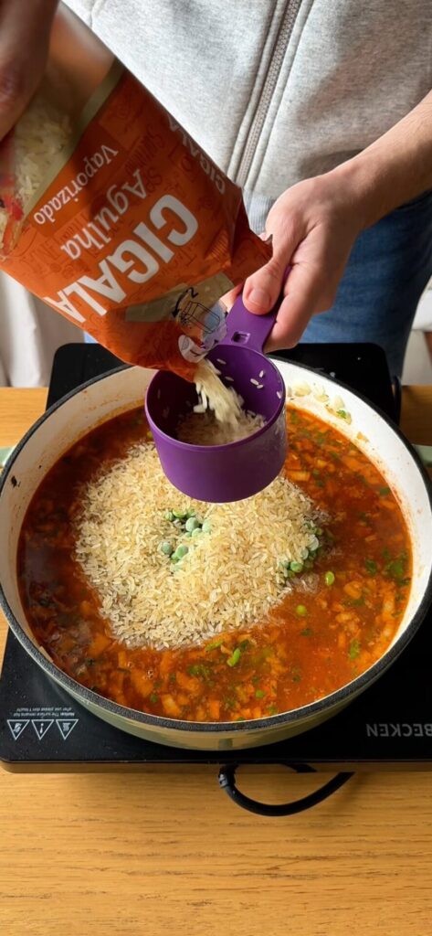 Adicione 2 chávenas de Arroz Agulha Vaporizado Cigala diretamente da embalagem. Envolve delicadamente para distribuir os sabores.