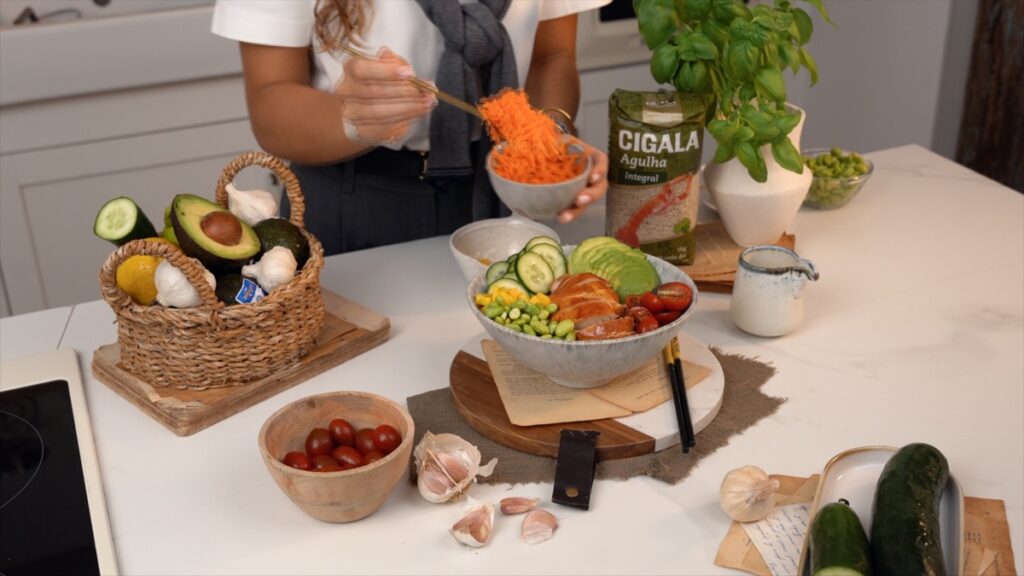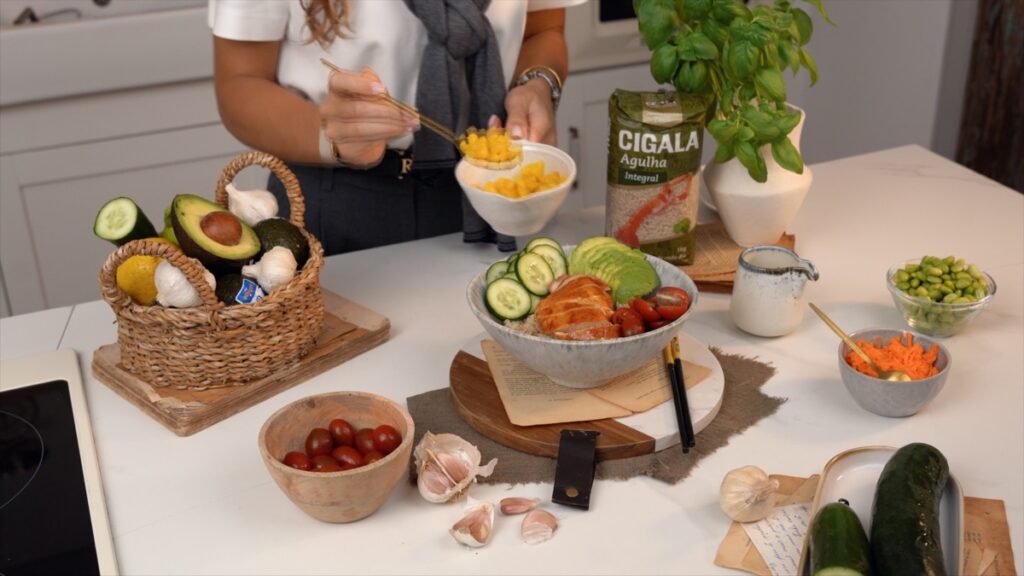 Imagine ver o seu poke bowl a ganhar forma: o brilho do arroz integral, o dourado do frango grelhado, a explosão de cor da manga e do tomate. No vídeo, estes detalhes inspiram e mostram como, em poucos minutos, consegue preparar uma refeição digna de restaurante.
